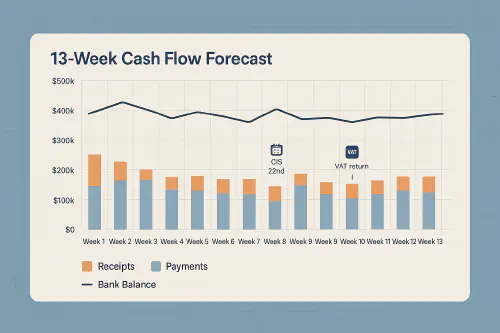 13‑week cash flow for trades: simple UK template with CIS, VAT and retentions