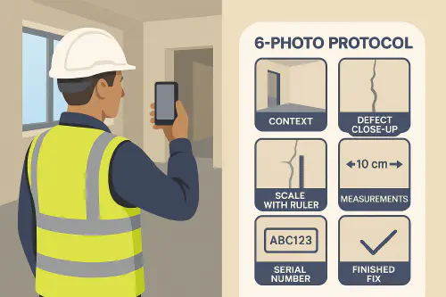 6 photo protocol for site evidence: what to photograph for snagging and disputes