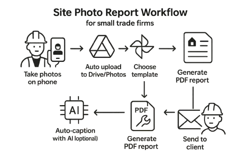 - Optional apps: a timestamp camera, a dedicated site‑photo app, or a small AI helper for captions.