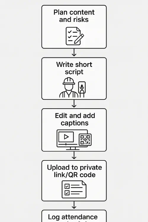 Tip: Your video is part of your induction. You still need a sign‑in and a short Q&A to confirm understanding. Use toolbox talks for ongoing updates. For a simple talk workflow, see Toolbox talk attendance QR code.