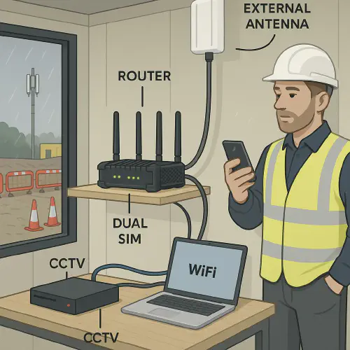 - Main contractors and SMEs setting up site cabins that need WiFi, Teams/Zoom, drawings, e-sign, and CCTV from day one.