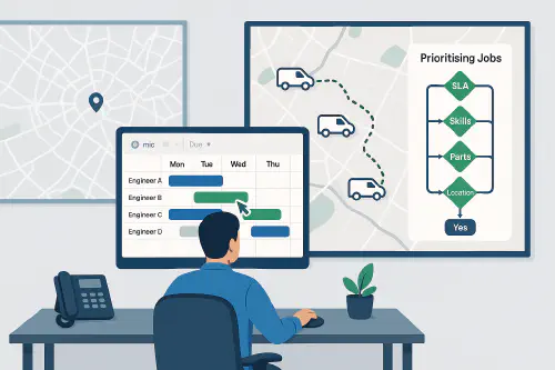 - Limit churn. Do not change an engineer’s day more than necessary. Protect two nearest jobs unless SLA risk demands it.