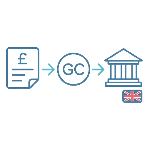 - Direct Debit interim account: choose GoCardless Clearing (GBP)