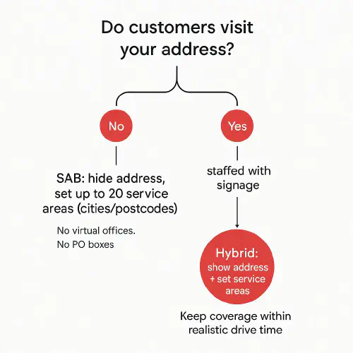 Decision tree for Service‑Area Business vs Hybrid on Google Business Profile