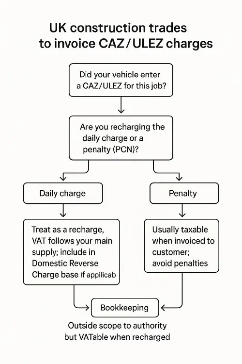 Flowchart: how to invoice CAZ/ULEZ charges and VAT treatment