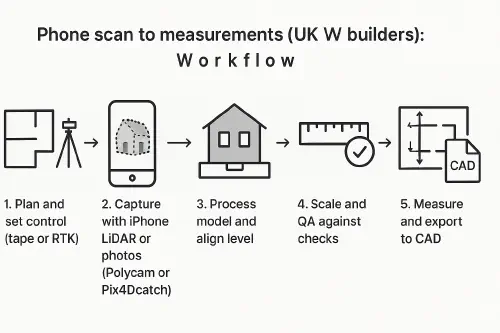 - CAD: From Polycam, export DXF, GLTF or orthographic images. From Pix4D, export point clouds/meshes and orthos. You can bring an ortho image into CAD and trace for a quick elevation. Example workflow from UK surveyors Bury Associates: From 3D scan with your phone to 2D CAD elevation drawing.