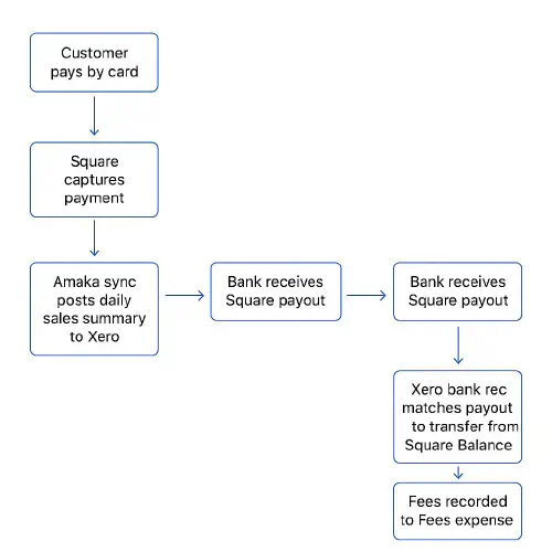 - Amaka’s Square + Xero setup guide: amaka.com/help/guide/square/xero/