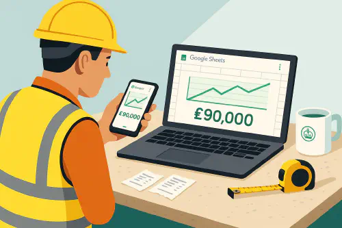 - WhatsApp nudge: If you use Make or Zapier, send yourself a WhatsApp message when the sheet crosses £85k (early warning), then again at £90k.