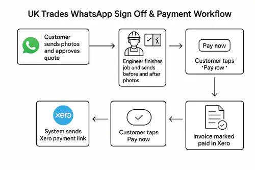 WhatsApp job sign-off with a Xero payment link: fast approvals and faster getting paid