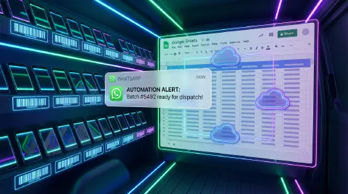Once the sheet and labels work in the field, the real win is automation: sending a WhatsApp alert when stock falls below a sensible minimum.